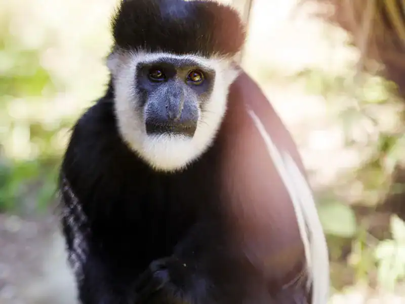 Los colobos blanco y negro habitan en bosques tropicales, montanos y de galería, incluyendo el Parque Nacional de Arusha, el Kilimanjaro y la Reserva del Selous.