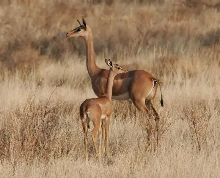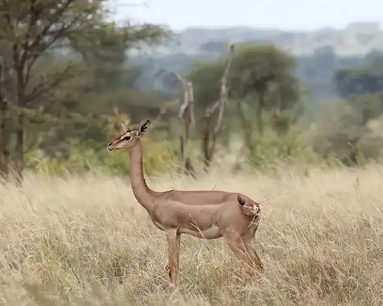 Las gacelas jirafa habitan en matorrales secos, sabanas áridas y bosques espinosos del norte y centro de Tanzania, especialmente en Tarangire, el Serengeti y el Área de Conservación de Ngorongoro.