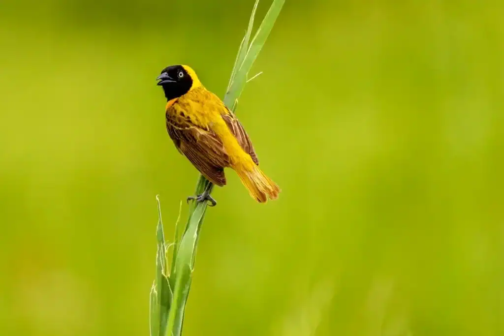 Descubre el ingenio del tejedor amarillo durante un safari en Tanzania. Reserva tu lugar para explorar su vida en las sabanas y aprender sobre sus increíbles habilidades de construcción.
