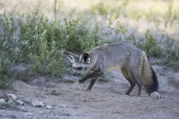 Las grandes orejas del zorro orejudo no solo le proporcionan una audición excelente, sino que también le ayudan a regular su temperatura corporal en el clima cálido. A diferencia de otros zorros, su dieta se compone casi exclusivamente de insectos, especialmente termitas y escarabajos, que localiza gracias a su agudo oído.