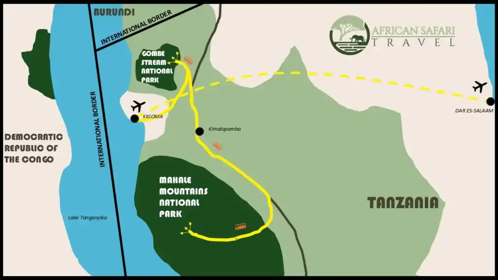 Este itinerario de 8 días te lleva a dos de los destinos más exclusivos de Tanzania: Gombe Stream National Park y Mahale Mountains National Park. Conocidos por sus poblaciones de chimpancés y paisajes espectaculares, estos parques ofrecen una experiencia única que combina la aventura de los safaris tradicionales con la exploración de selvas tropicales y la observación de primates. Desde el inicio en la vibrante Dar es Salaam hasta las tranquilas orillas del lago Tanganica, este safari es ideal para amantes de la naturaleza y la vida salvaje que buscan una conexión íntima con la fauna africana.